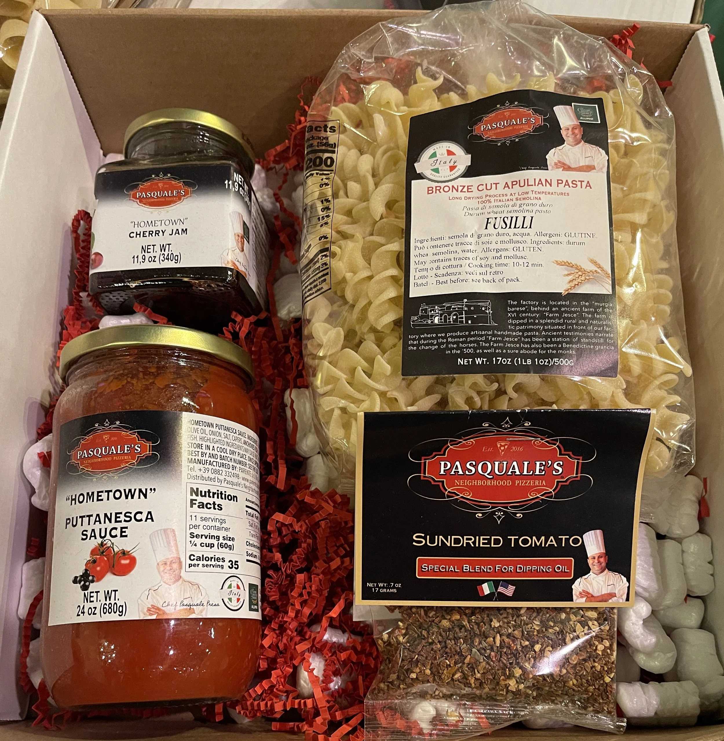 This box includes the essentials for a simple Italian dinner. It features two jars of Pasquale’s signature sauces—Hometown Amatriciana and Hometown Apulian Vegetarian (each 680g / 24 oz)—made with clean ingredients and bold flavors. You’ll also get two types of bronze-cut Apulian pasta: spaghetti and paccheri (500g / 1.1 lb each), both made using traditional methods for a firm texture that holds sauce well. Rounding out the box is a 314ml jar of Hometown Artichoke Bruschetta, a vegan, gluten-free spread that works well on toasted bread or as an appetizer.